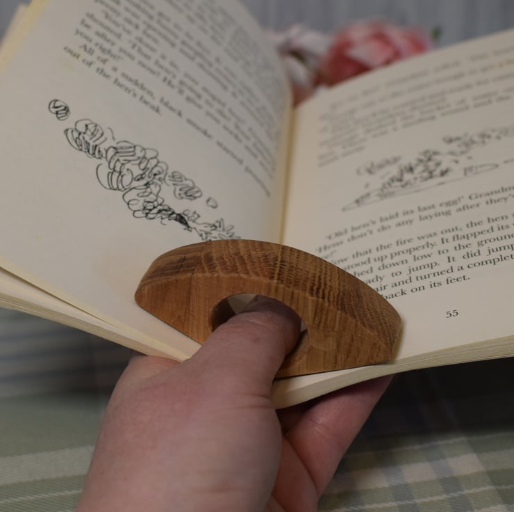 A book thumb rest made from Oak wood.