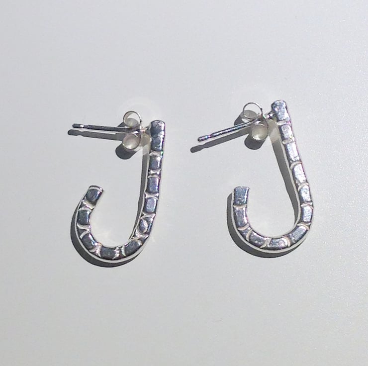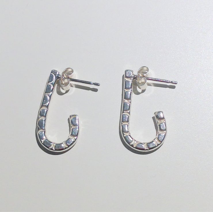 These beautiful earrings are handcrafted from sterling silver and hammer stamped with an attractive design.
