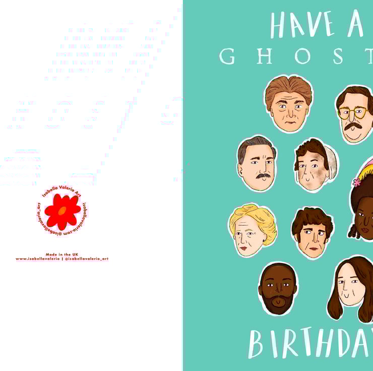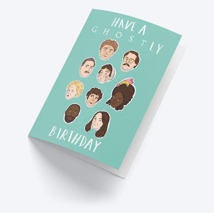Colourful, Ghosts themed Birthday card.