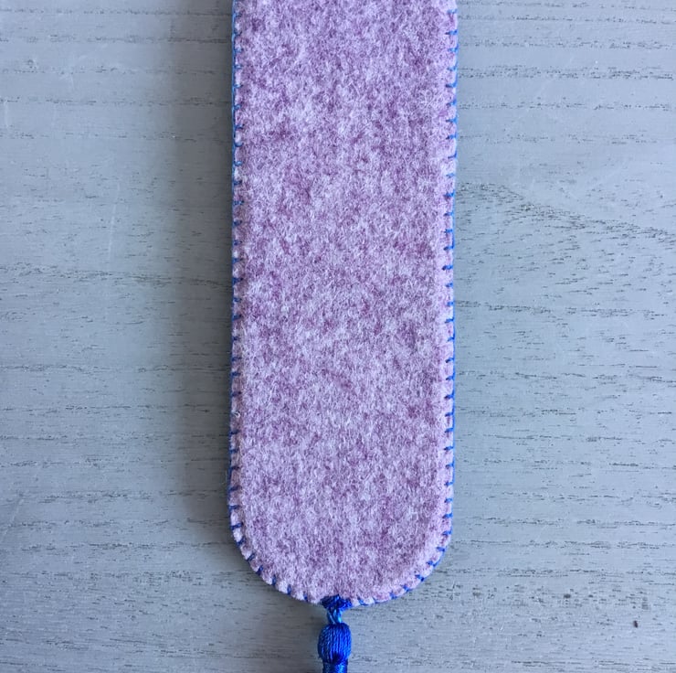 This textile bookmark has cardboard inside, so is firm to mark any page in a book.