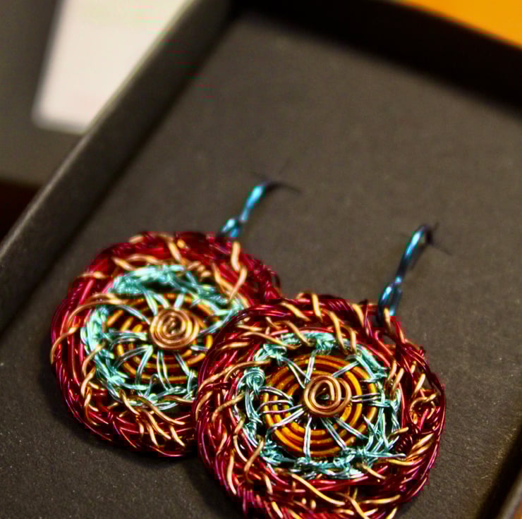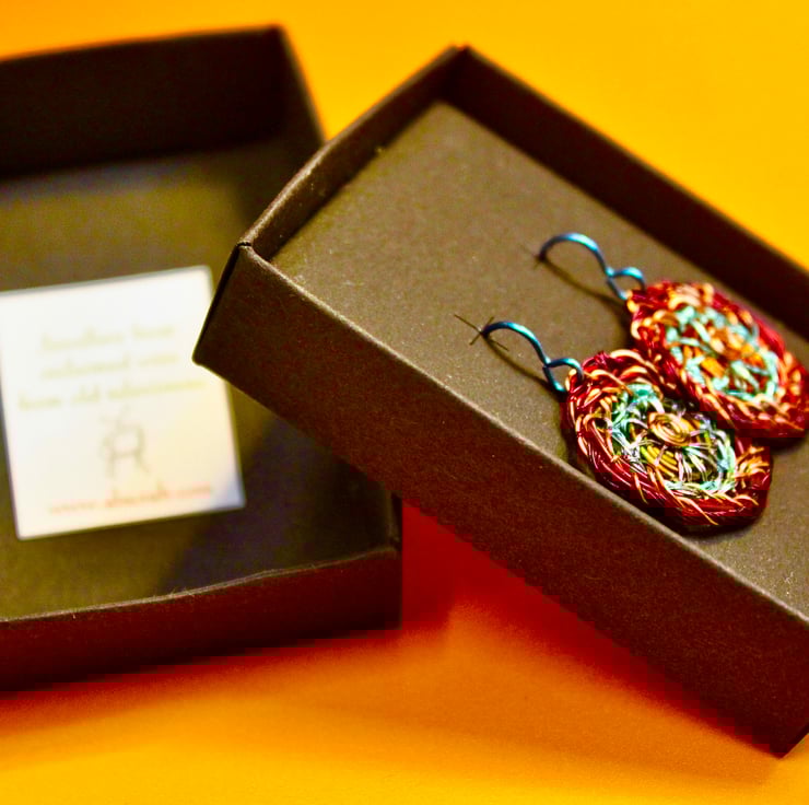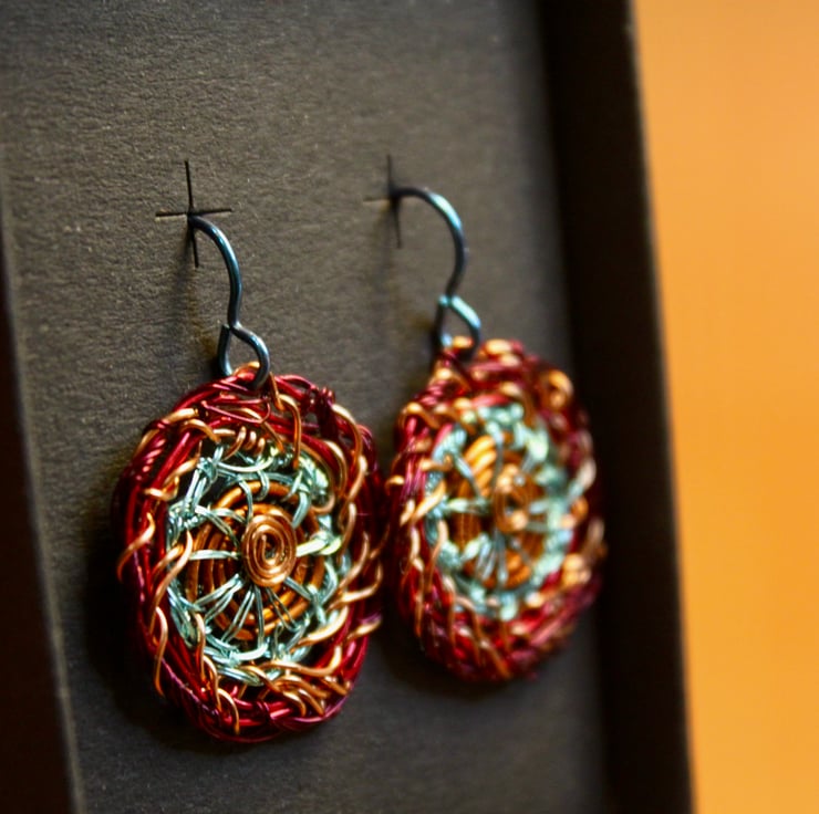Made in Wirral by me in 2023 from my new studio 'Wellington Road Studios", Alison Bailey Smith. I trained as a jeweller in Edinburgh in the 80s and 90s and have been recycling since then, in different places all round the world. I am now back in the UK and recently acquired wires from lots of old televisions so am having great fun with new colours.My work is definitely a by-product of the 21st century & I have been described as a 'techno -cannibal' by BBC journalist Clare English. My career has spanned 3 decades and three different countries since leaving Edinburgh College of Art in 1990. The motivation behind my work comes from being the child of post war parents, Scottish thriftiness and an avid watcher of Blue Peter! I am keen to re-use, re-develop and re-create n my home and in my business.