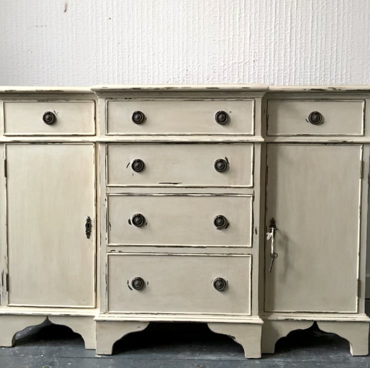 It is a slim sideboard, not too much depth or long: perfect size for a flat. I immediately thought to make it white and distressed!
