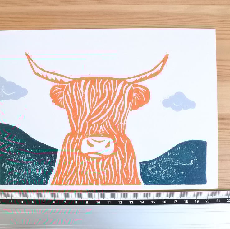 This lino print is hand burnished on 220g paper. The print size is 19x12cm and the paper size is A5, 14.8x21cm. Each print is hand signed in the back.
