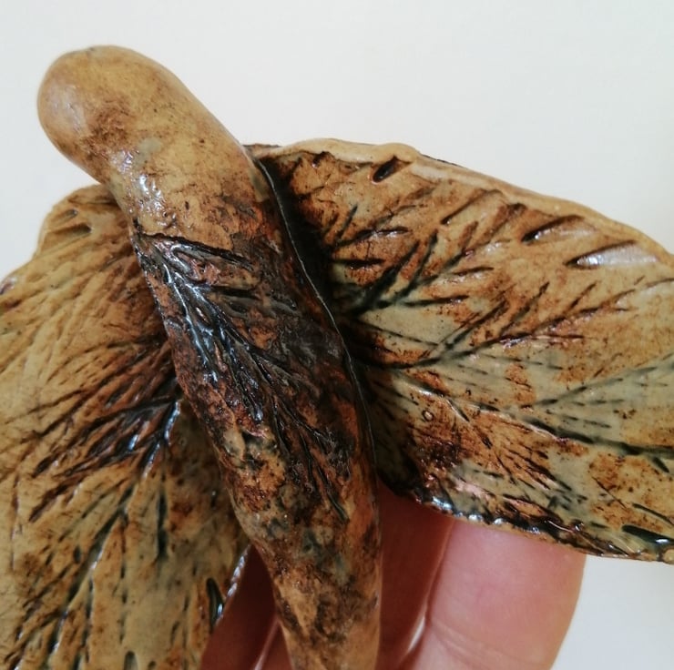 This ceramic piece has been made from Stoneware clay, imprinted with Pine fronds from a tree in my garden, just one of a recent batch of Nature Sprites.
