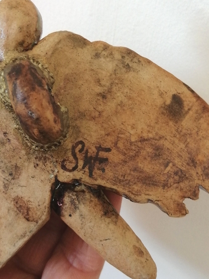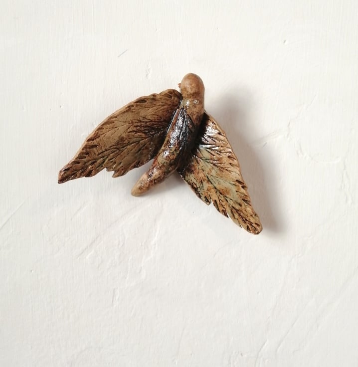 The wings of this Nature Sprite have been created by impressing Pine Fronds from my own garden into the wet clay.