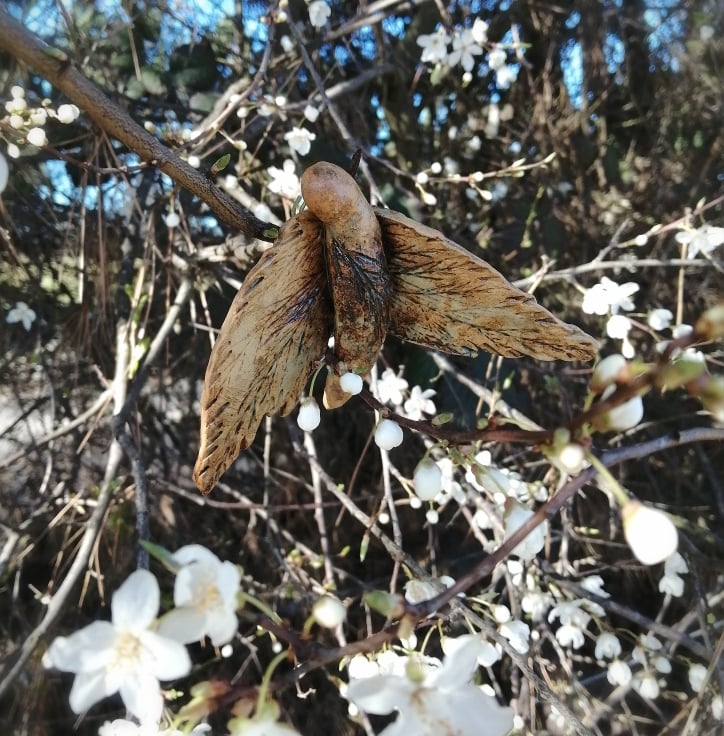 This Pine textured Nature Sprite is appox 13 cm at it's widest point, 9 cm at it's highest point and approx depth of 4 cm inclusive of hanging mechanism an the reverse.