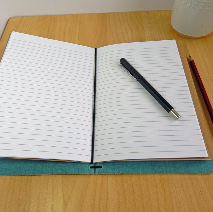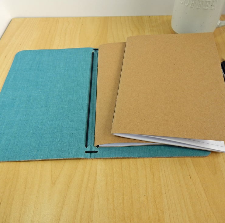 You can have any combination of notebooks inside - plain or lined notepaper, squared or dotted paper, sketch paper, in sizes up to A5.