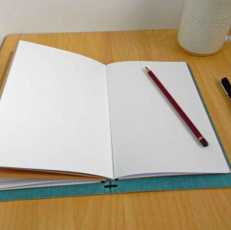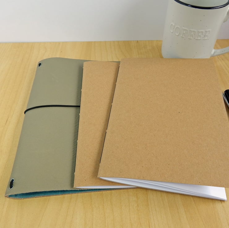 - Two A5 Kraft notebooks are included, with white pages of 90gsm paper - one lined, one plain. Additional notebooks & sketchbooks are available, with various types of paper inside.
