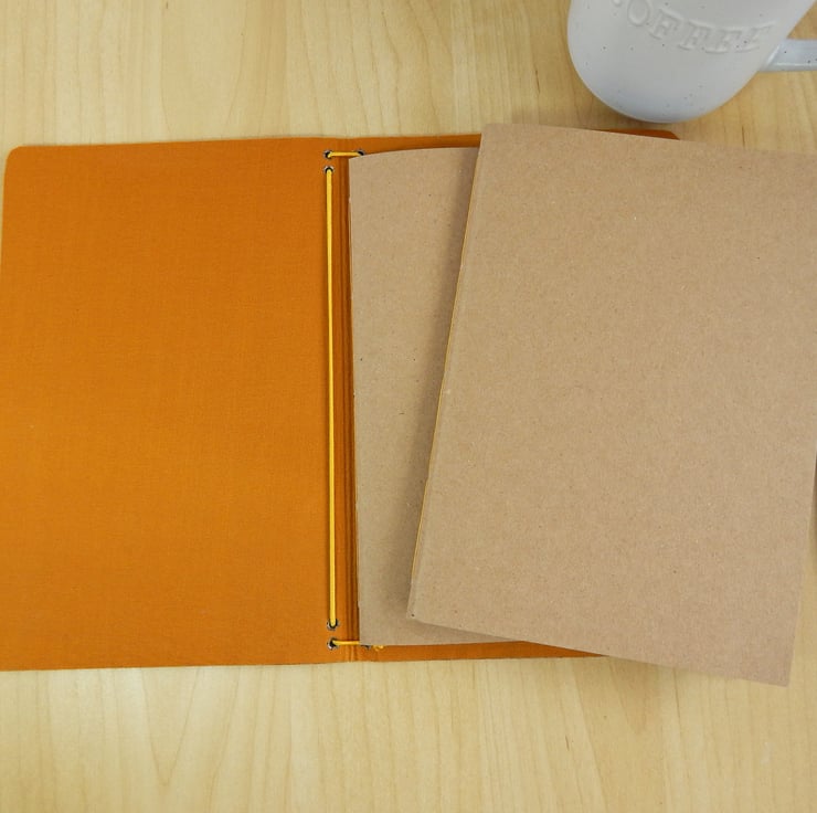 You can have any combination of notebooks inside - plain or lined notepaper, squared or dotted paper, sketch paper, in sizes up to A5.