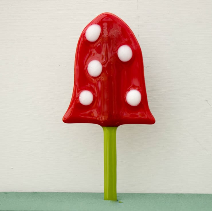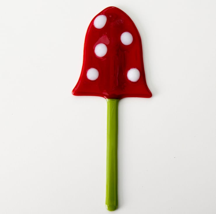 Each Toadstool is made from a piece of coloured glass that has been hand-cut and fused to a glass stalk. We've added glass dots to give it even more character. It is approximately 17.5 cm tall.