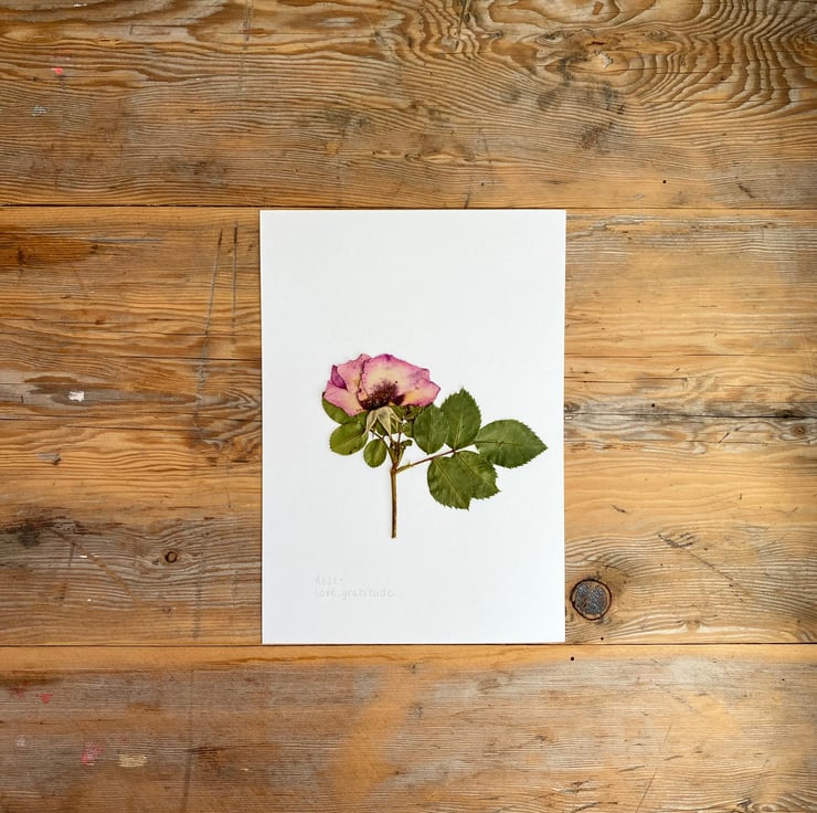 I have grown this rose in my garden in Cheshire, and preserved the flower using the traditional method of flower pressing.