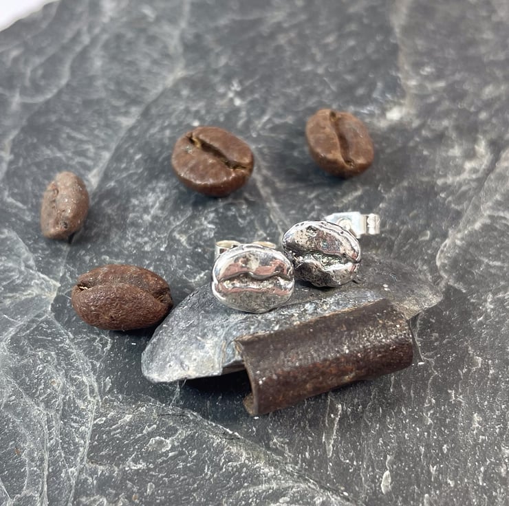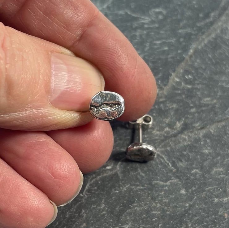 These little silver beans have been cast from real coffee beans. I chose the smallest bean I could find to make neat little studs.