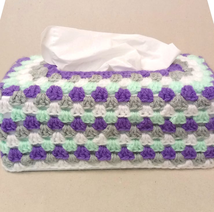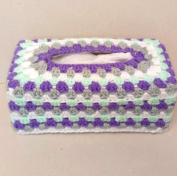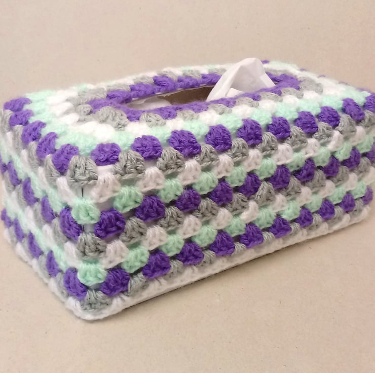 This is a lovely tissue box cover, crocheted in a rectangular shape,
