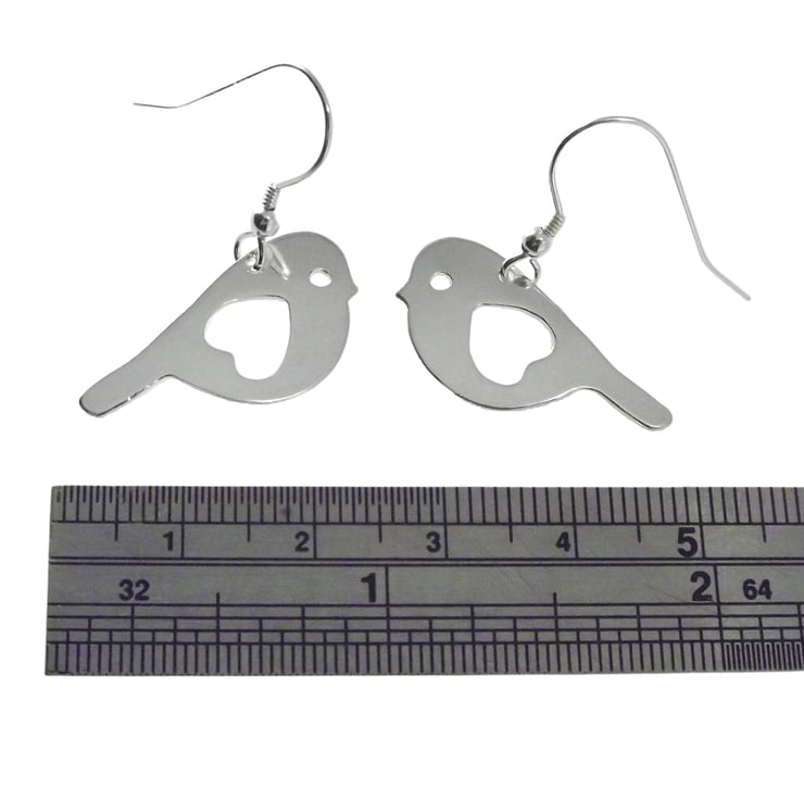 Bird Drop Earrings, Silver Bird Jewellery, Handmade Nature Gift for Her
