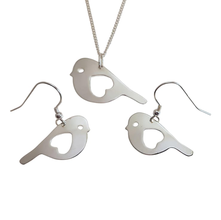 This bird jewellery set includes a large pendant and a pair of drop earrings which have been lovingly crafted by hand.