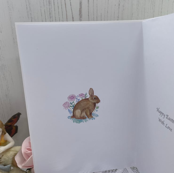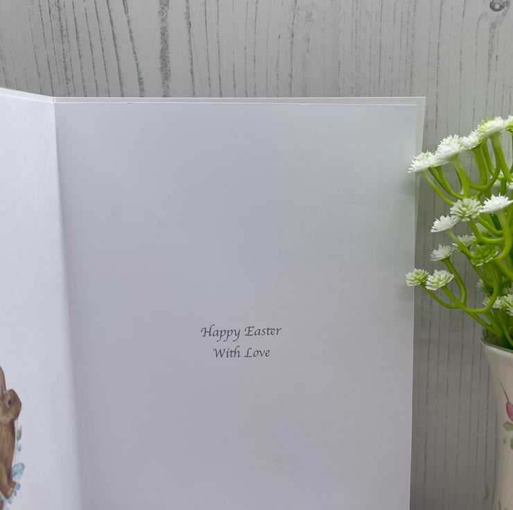 Inside of the card has a cute bunny design and the greeting ‘Happy Easter with love’.