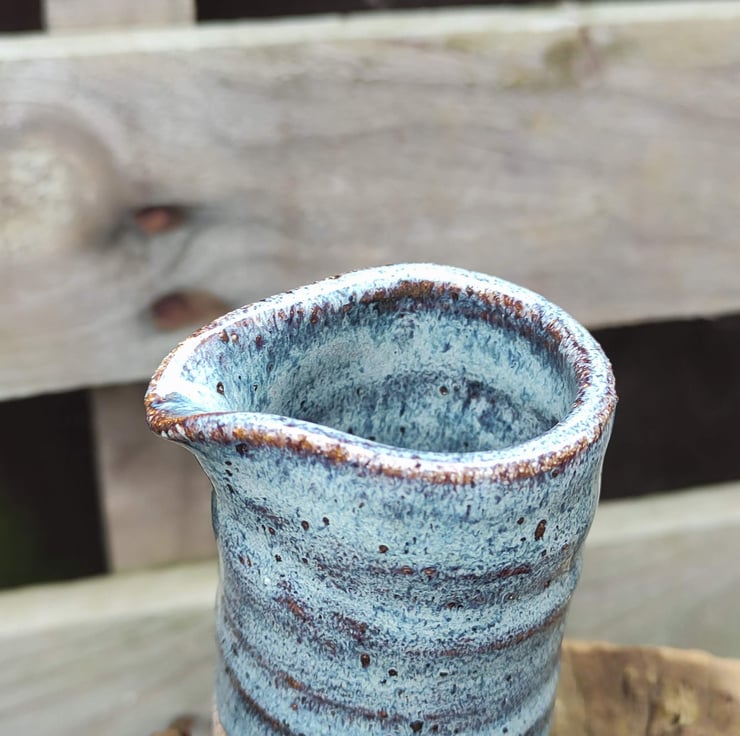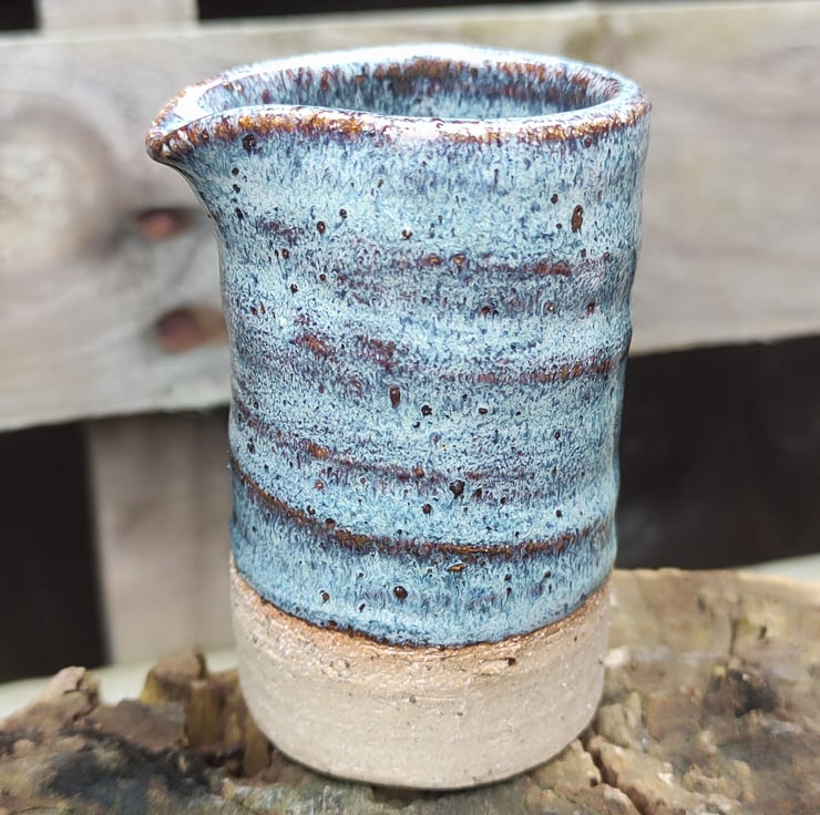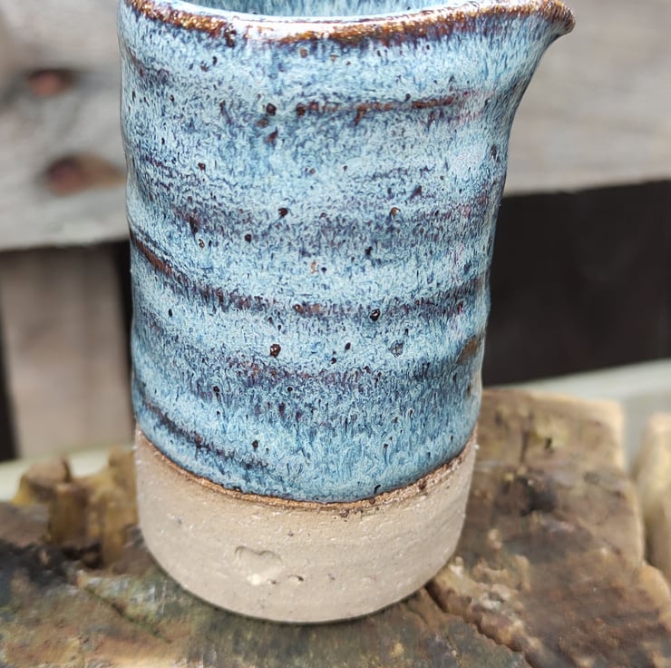 Great wee speckled brown grey glaze slightly taller milk jug, perfect for one! I've used a speckled, slightly rougher clay for this jug & I love the look and texture of it. Some speckles even show through the glaze. Fired to c1200 degrees (stoneware temperature) and this makes it more durable.