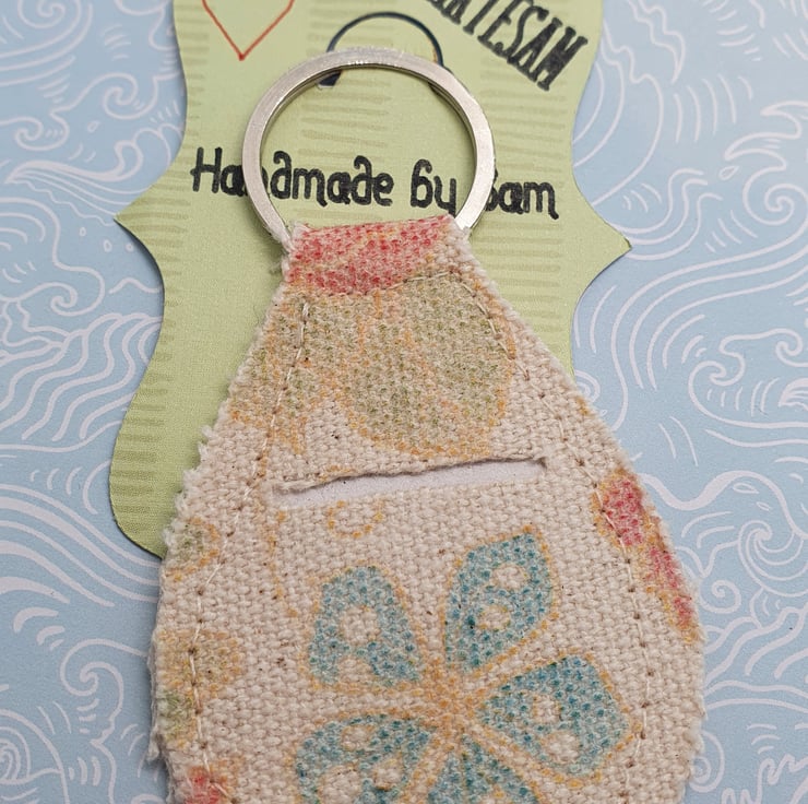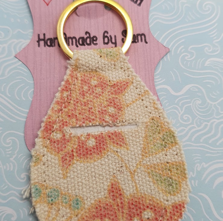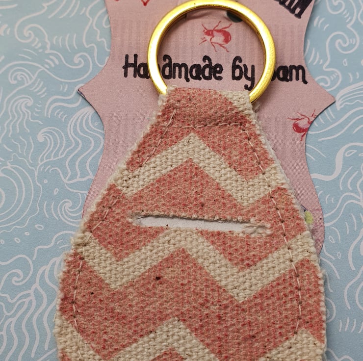 Handmade Trolley Token holder made with quirky fabric. Sewn together with hole for a Pound Coin or Trolley Token. Never have to go hunting for a Trolley token again.