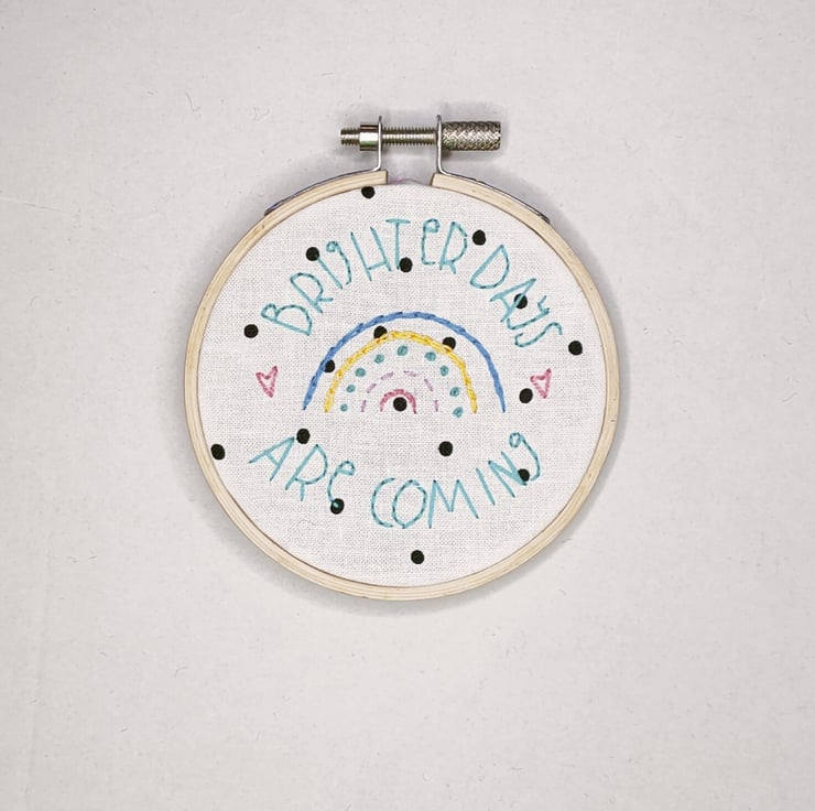 It's designed to fit a 3 inch hoop and uses 5 coloured thread (but you could use more or less, if you like!)