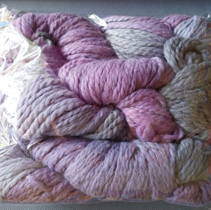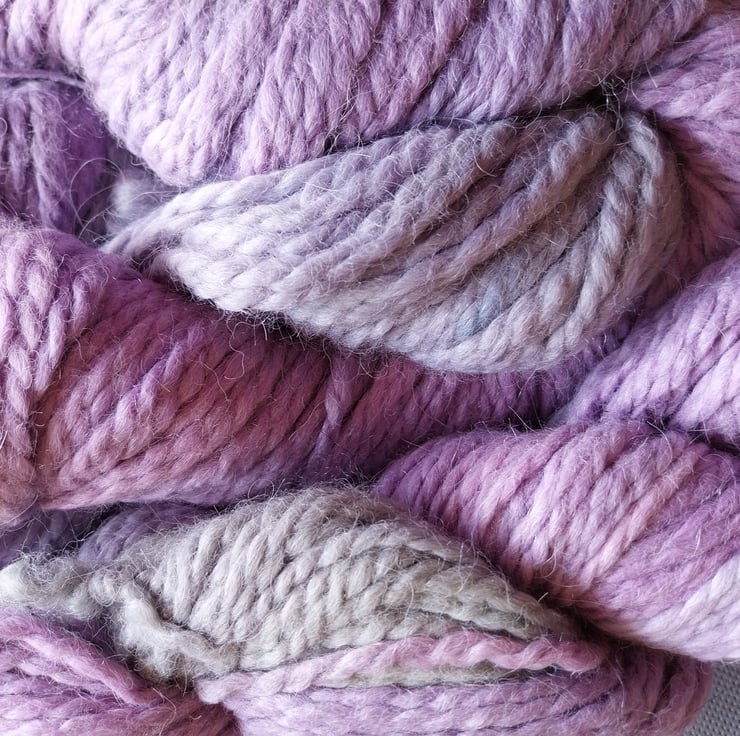The colours are a soft mix of blue, green and Lilac pastels and will subtly knit up with a variegated effect.