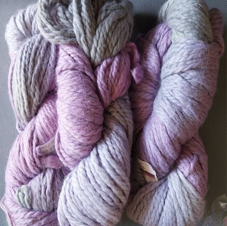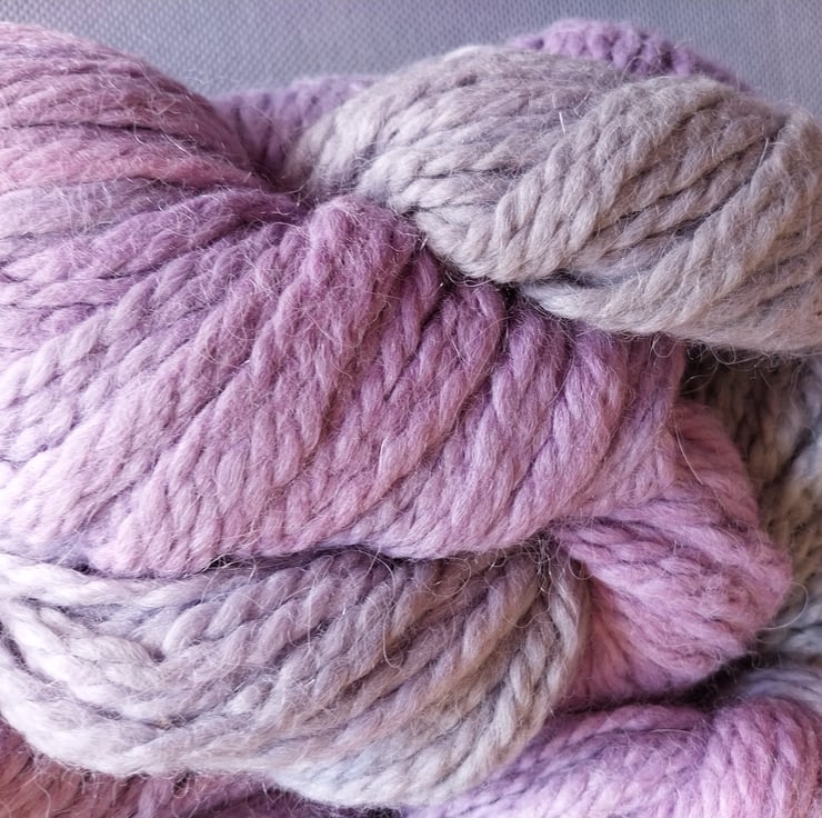 The colours are a soft mix of blue, green and Lilac pastels and will subtly knit up with a variegated effect.