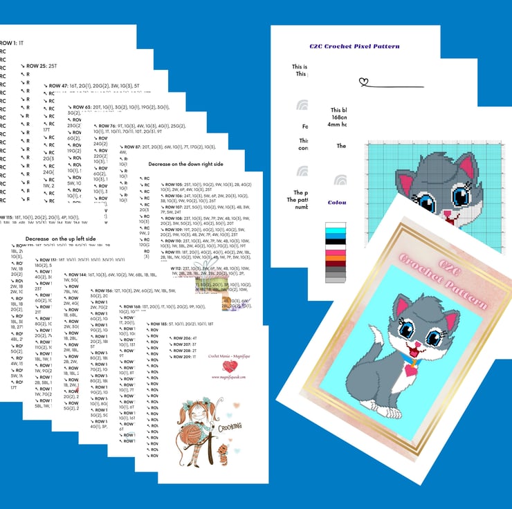 The PDF ebook contains a pattern for crocheters titled "Cat" with instructions to make the finished product.