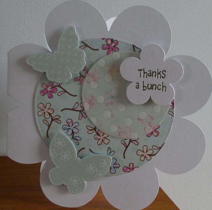 floral details and a flower shaped message with the words ''Thanks a Bunch'.