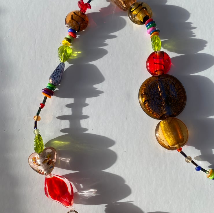 I use a variety of glass beads (a mix of silverfoil, lampwork, murano, czech and other types of glass beads), I also sometime incorporate recycled beads. I make each original piece individually to ensure that every piece is unique with no two being the same.