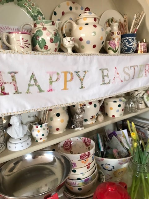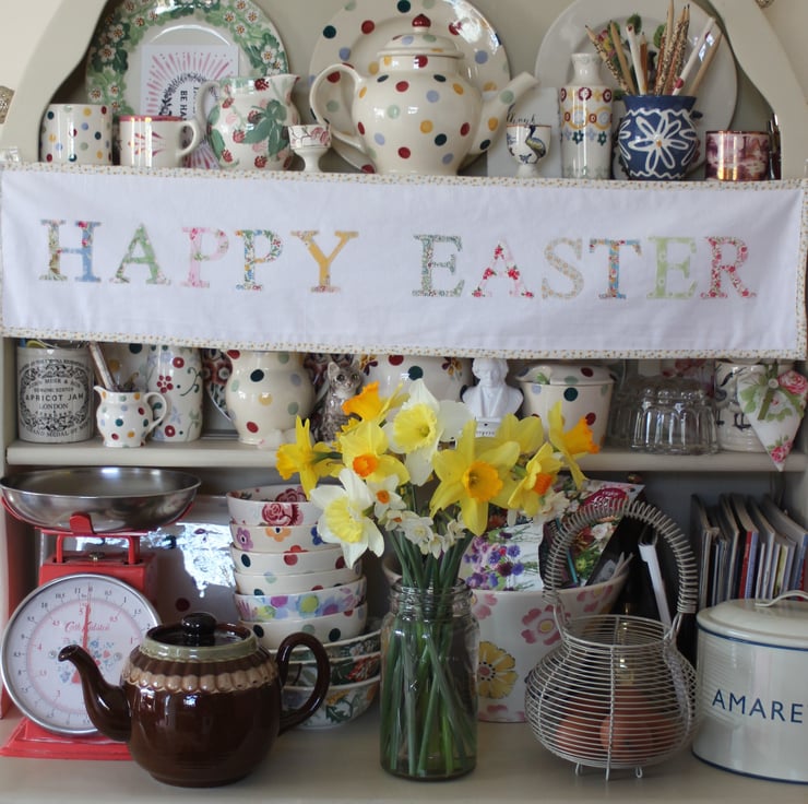 Vintage style Easter banner created from snippets of leftover floral fabric, including odds and ends of Liberty, Tilda and Tania Whelan material.