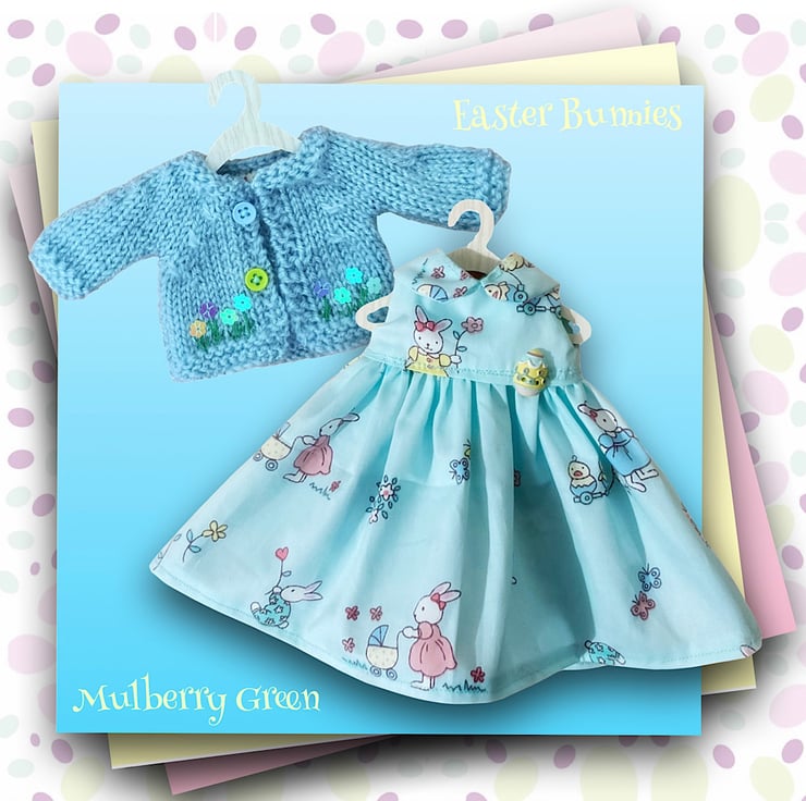 A pretty little pale blue cardigan embroidered with Spring flowers, to fit the Mulberry Green characters. The cardigan matches the Easter Bunny dress.