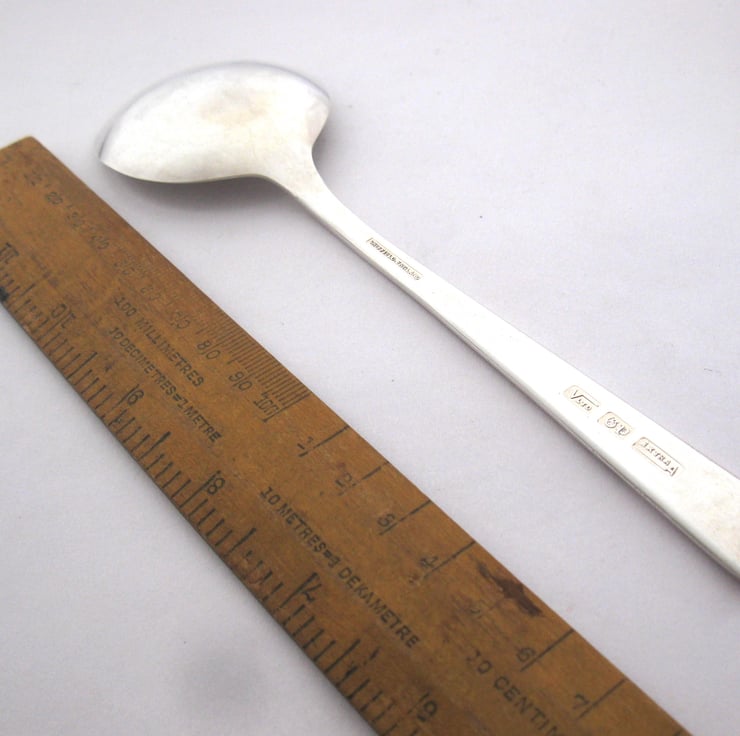 Please note this is a vintage spoon so it has hairline scratches and wear marks in the plating. This spoon has been around a bit and has character. It's a survivor. If you were looking for a mirror-finished brand new spoon, this isn't one. Just so you know.