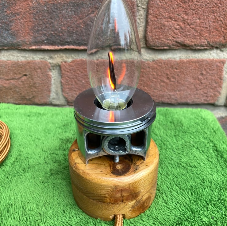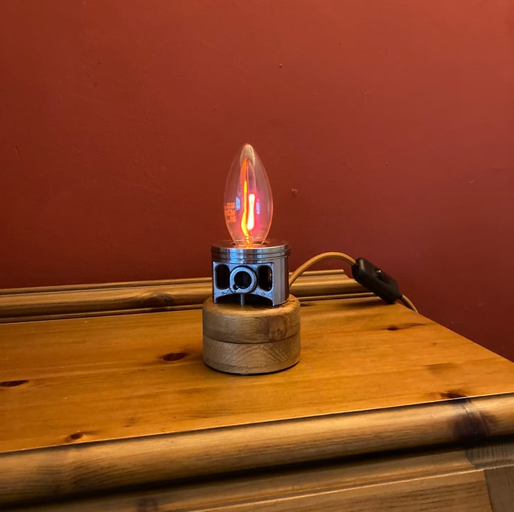 The idea to make a lamp from an old piston has been rattling around in my head for a while, to make it unique and different from anyone else’s I put the bulb holder inside the piston! I was so pleased with the result that I made another…