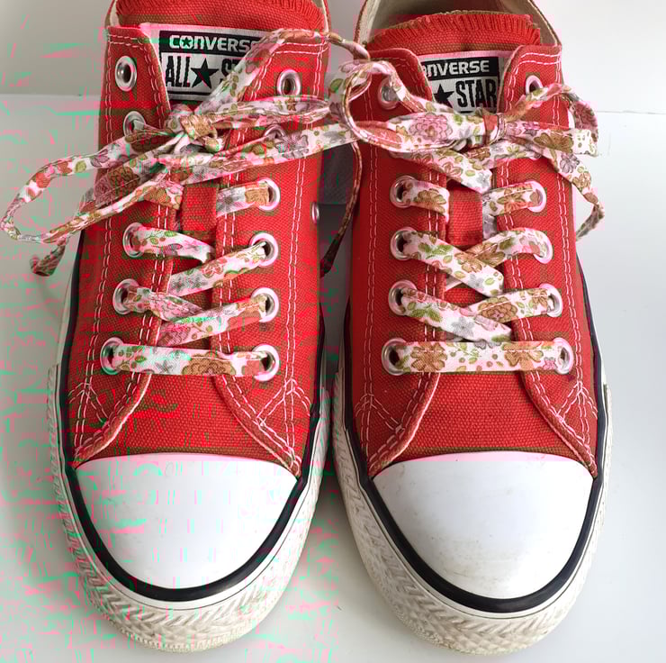 Add a pop of personality to your favourite shoes with a pair of floral cotton laces. They will fit any low type shoe. Converse, Vans, Rocket Dog, Joules, the list goes on.