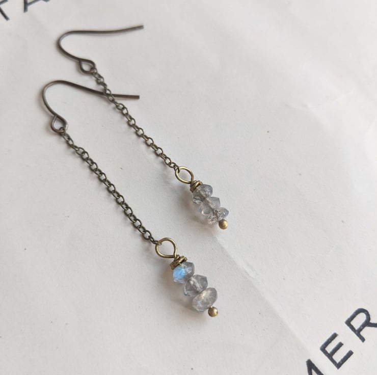 Total earring drop 45mm (just under 2"). Bronze plated hooks. Nickel free earrings.