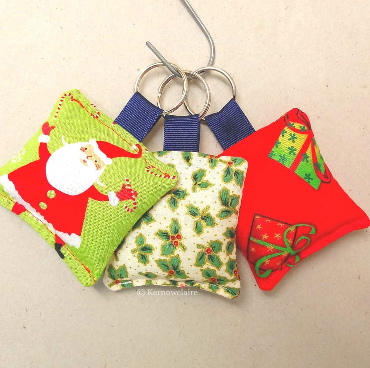 This is a lovely Christmas key ring, handmade in cotton fabric,
