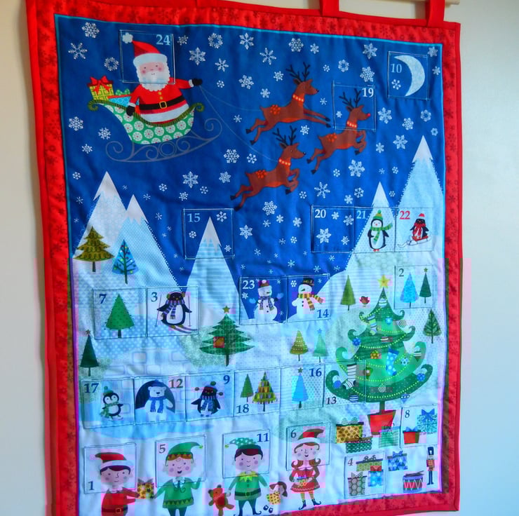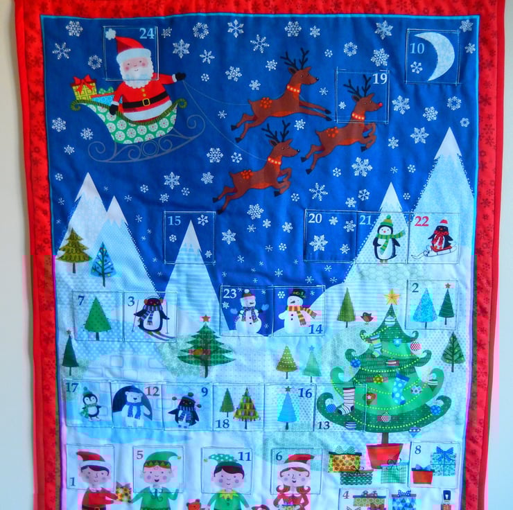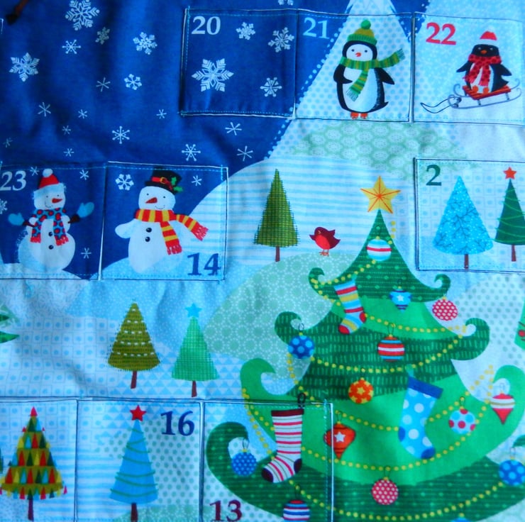 This reusable fabric Advent Calendar has 24 numbered pockets.