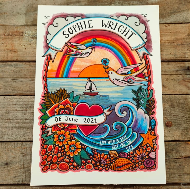 Featuring the positive saying ‘Live Wild And Free Just Like The Sea’