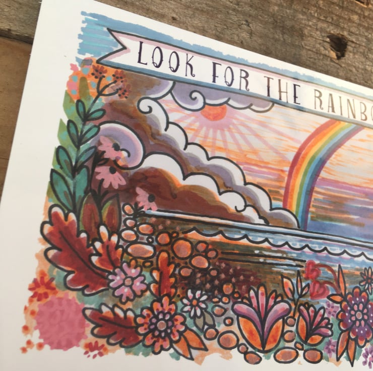 Look For The Rainbows in Life Card. Positive Quote Rainbow Greeting Card