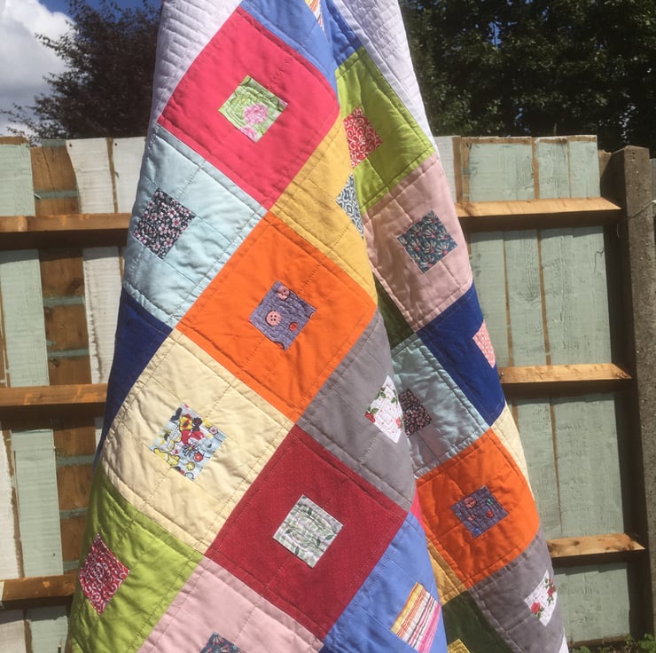 This stunning Gem stone patchwork quilt would look equally good on a bed or as a throw on your sofa, bringing a pop of colour to any room.