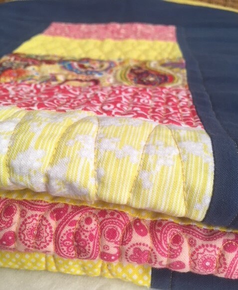 Coin quilt design decorated with free motion quilting.