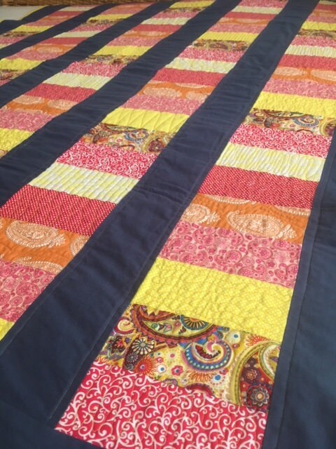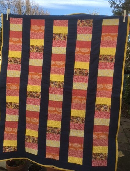 Modern, colourful quilted throw made from 100% multi-coloured cotton fabrics.