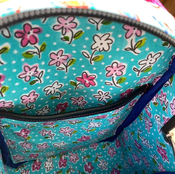 This delightful bag is fully lined and has an internal slip pocket. The inside seams are bound which gives extra structure to the bag.