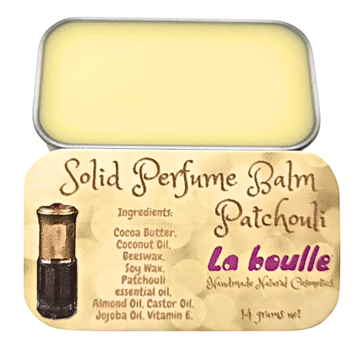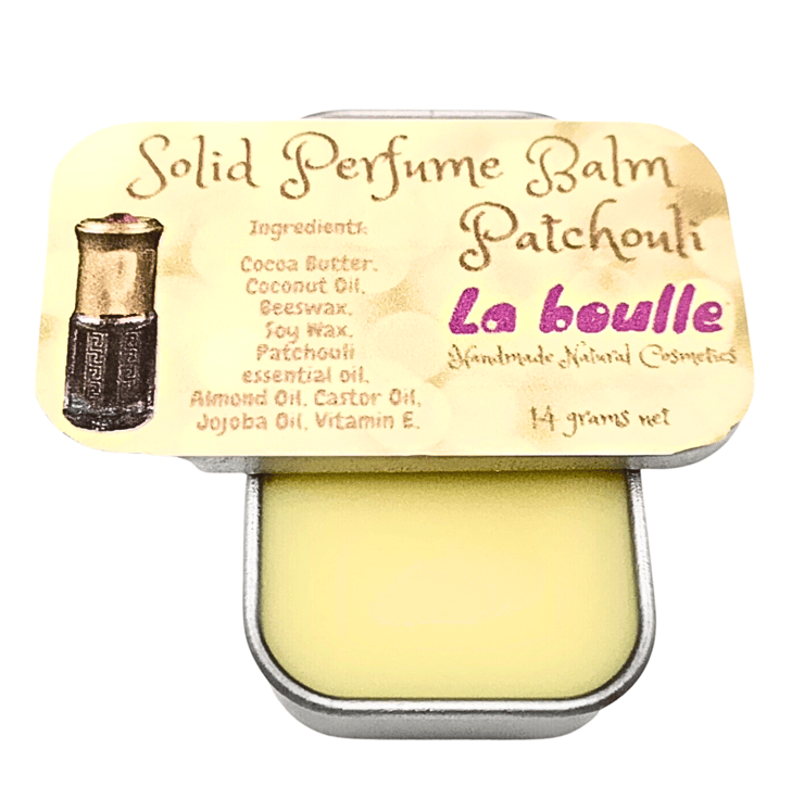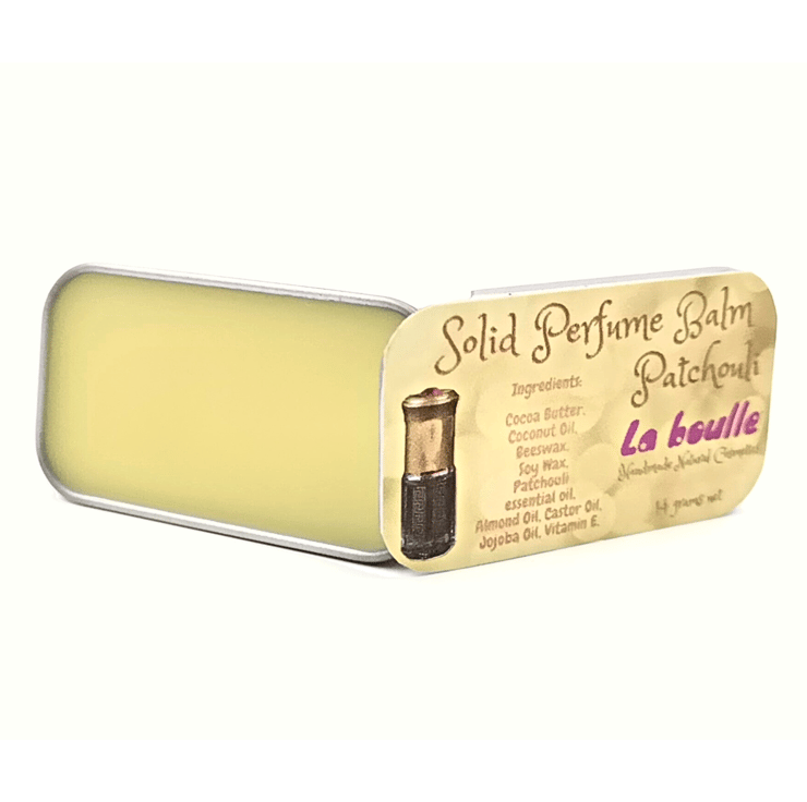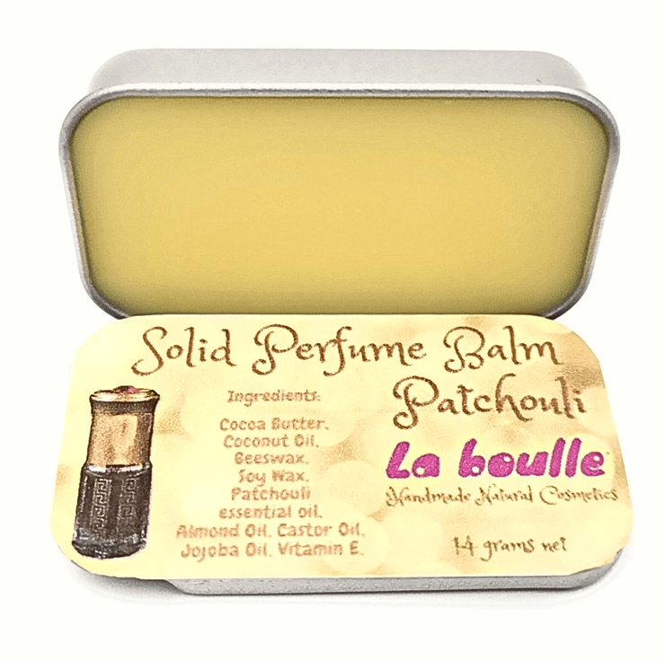 Ingredients: Cocoa Butter, Coconut Oil, Beeswax, Soy Wax, Patchouli Essential Oil, Almond Oil, Castor Oil, Jojoba Oil, Vitamin E.