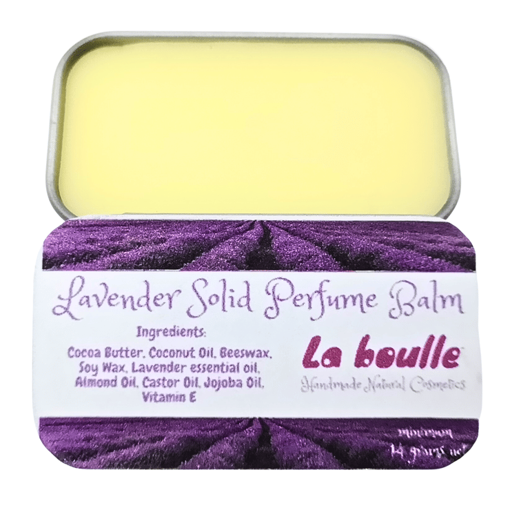 Ingredients: Cocoa Butter, Coconut Oil, Beeswax, Soy Wax, Lavender Essential Oil, Almond Oil, Castor Oil, Jojoba Oil, Vitamin E.