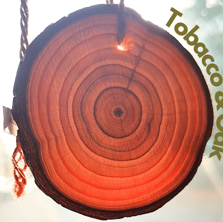Tobacco & Oak Car Air Freshener. Wooden slice with long-lasting fragrance. UK.