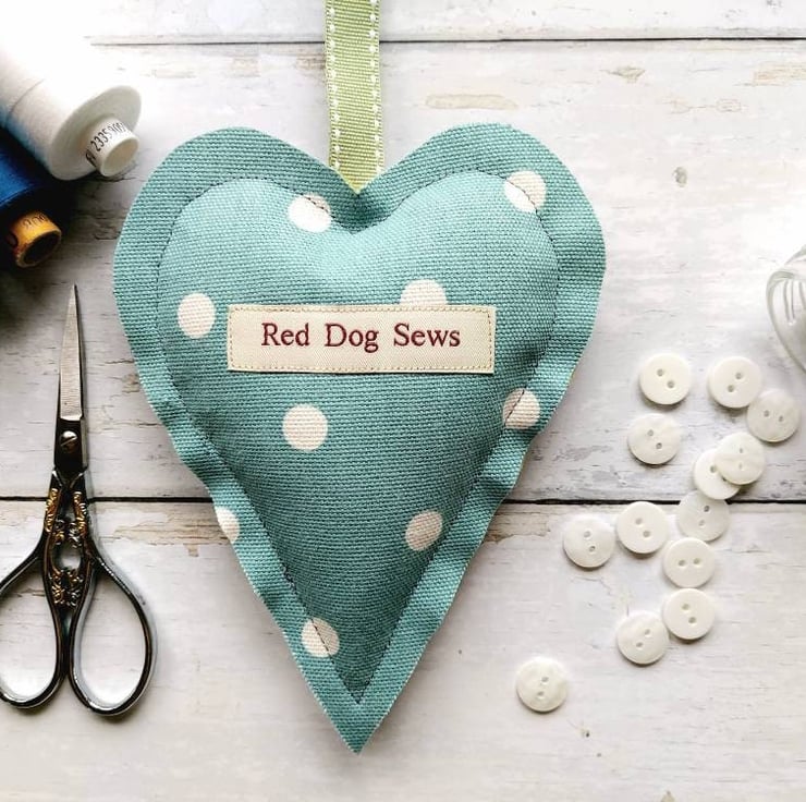 This handmade decorative hanging heart inspired by beautiful buebell woodland walks on the south coast of England with my big red dog.