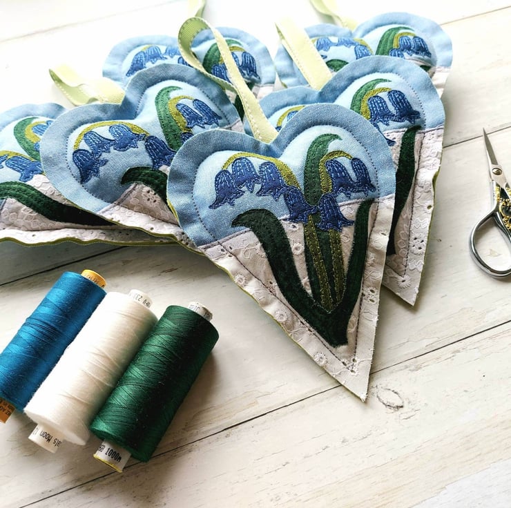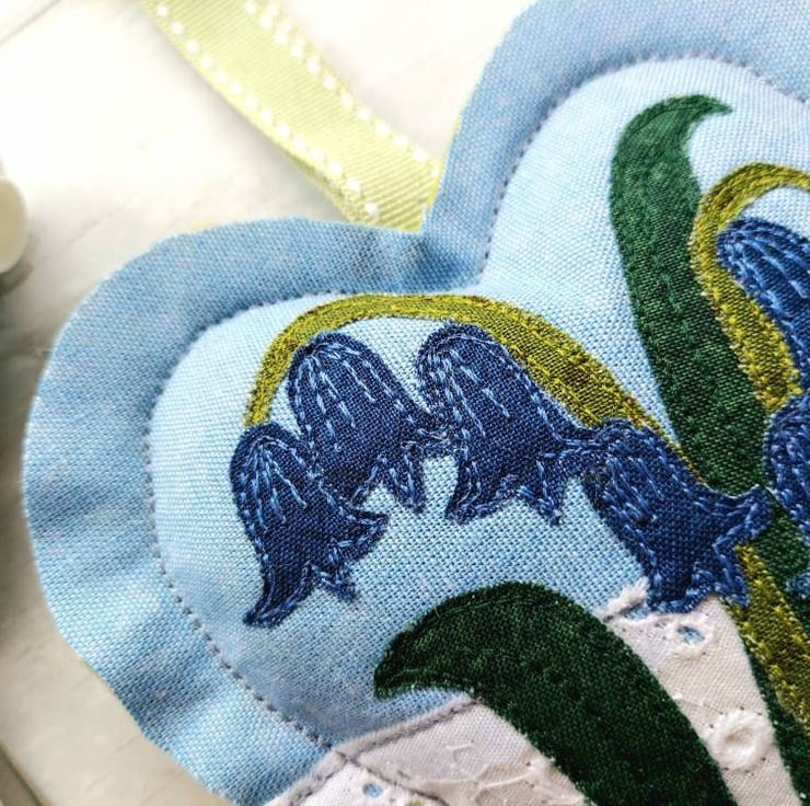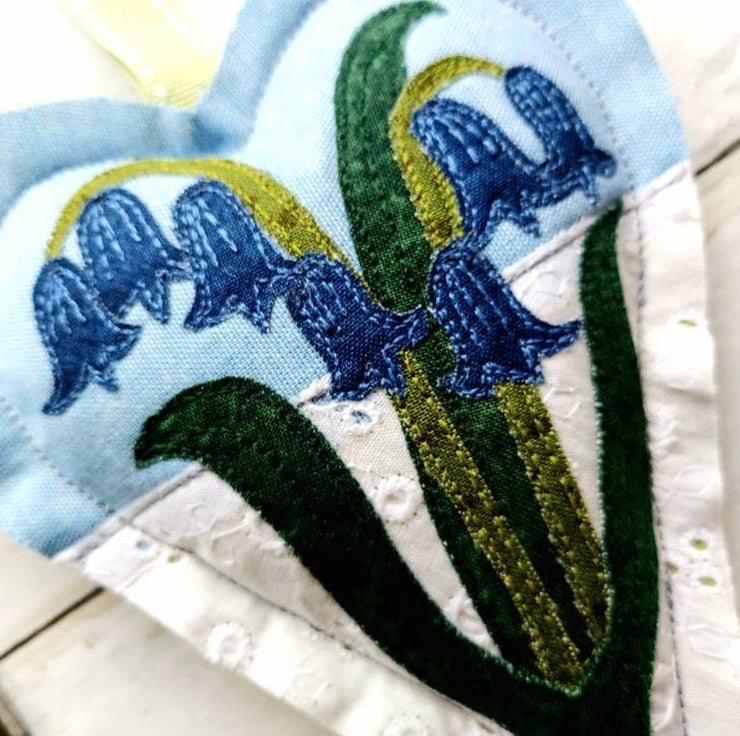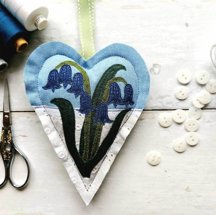 Bluebell Decorative freemotion Sewn Applique Padded Hanging Heart