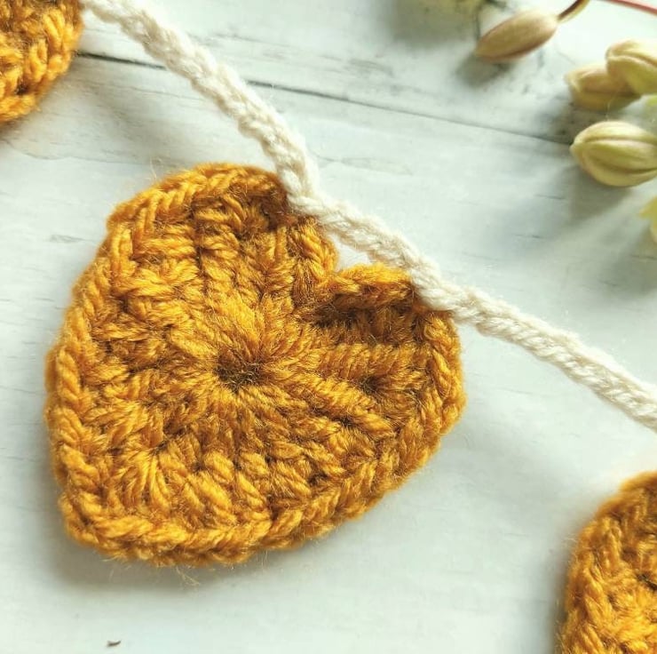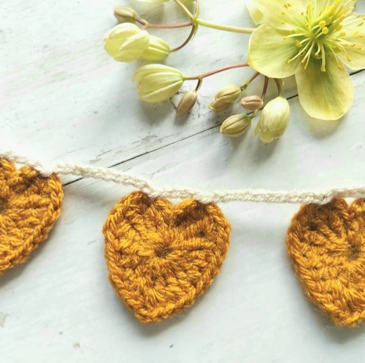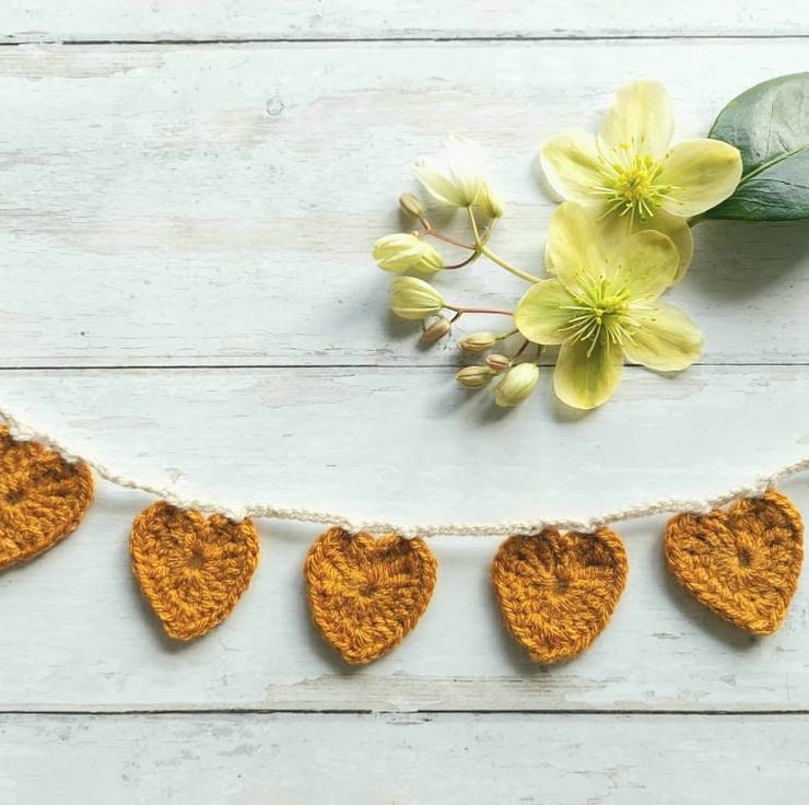Gorgeous mustard crochet heart garland perfect for decorating a favourite space.