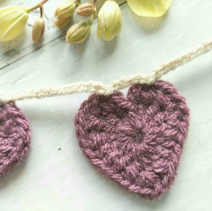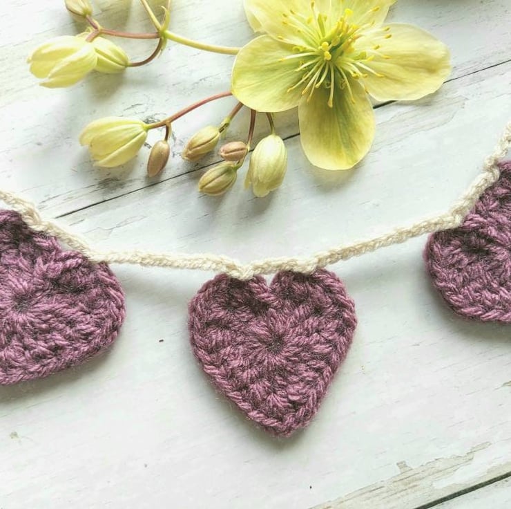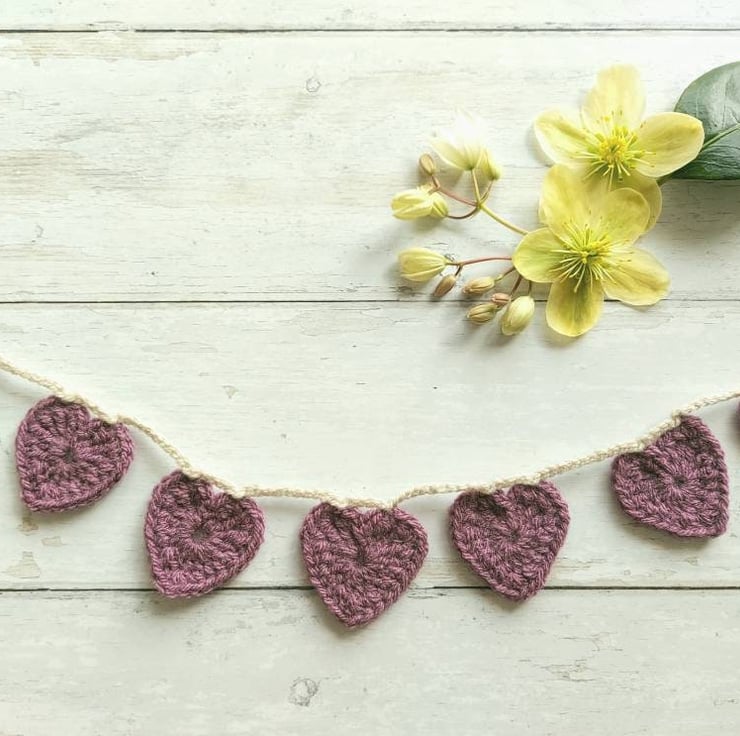 Gorgeous grape coloured crochet heart garland perfect for decorating a favourite space.