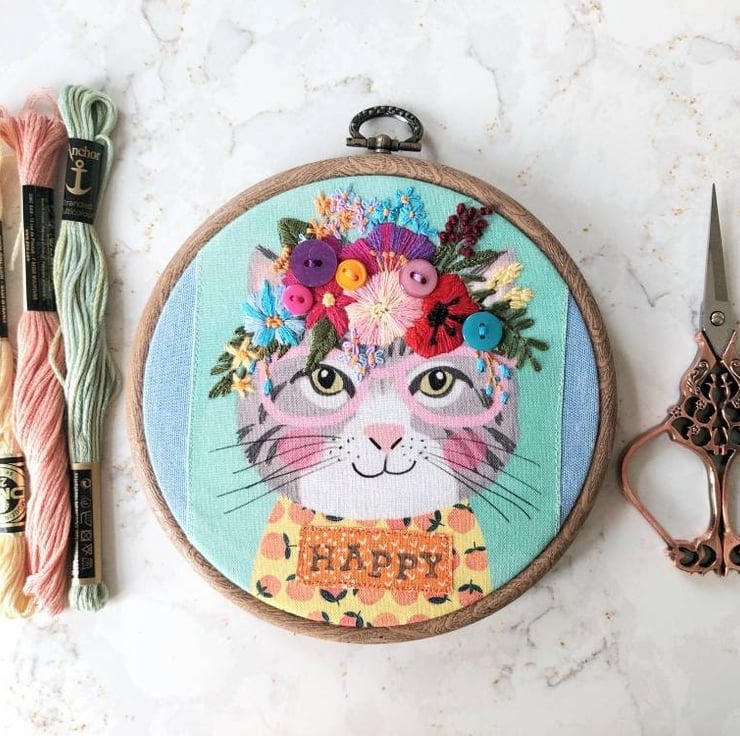 Cute little cat floral hoop to brighten up your day.
